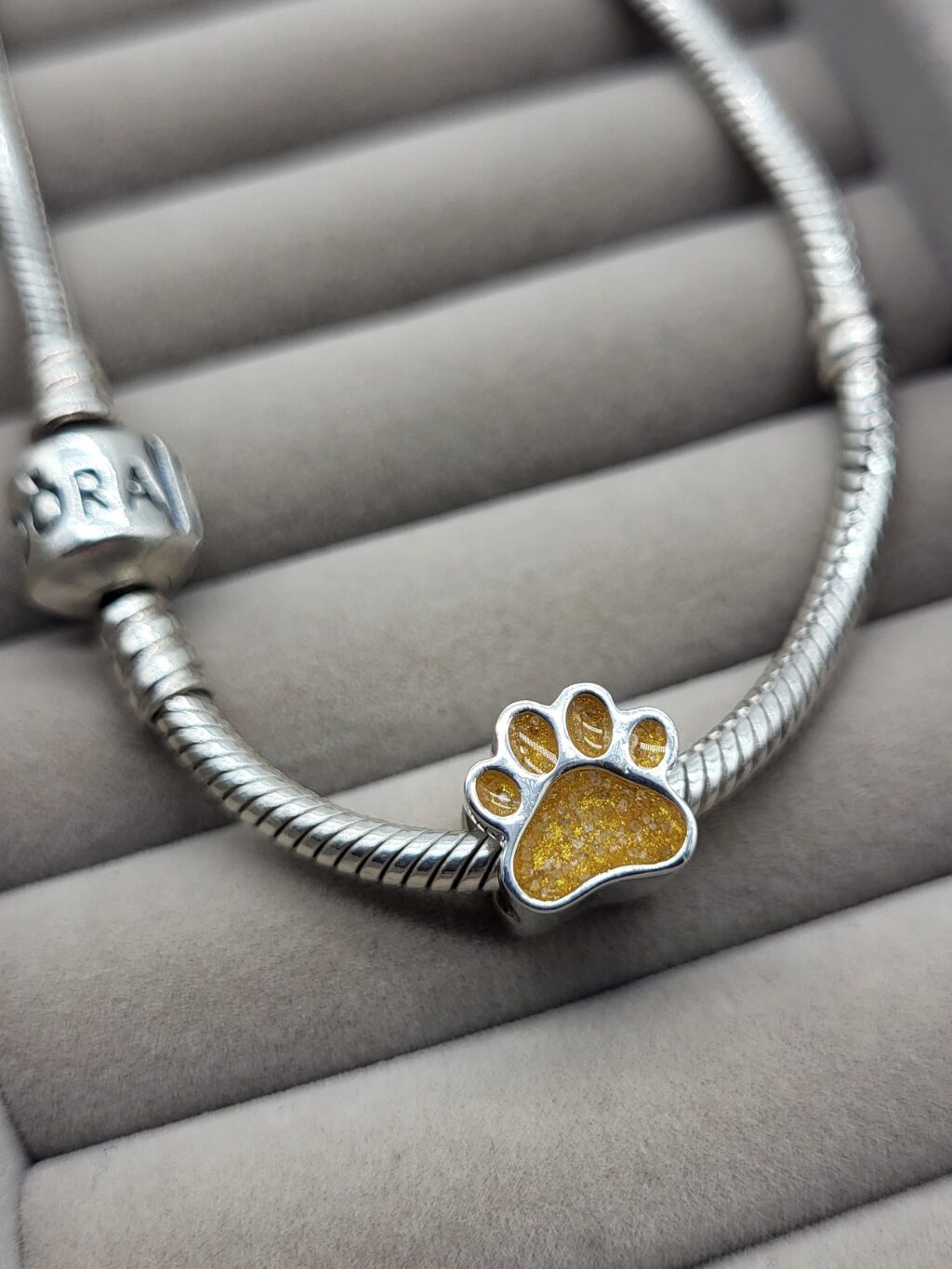 Our 925 Solid Sterling Silver Paw charms are designed for commemorating our beloved fluffy companions. In a choice of eighteen different coloured backgrounds. Our Charms and beads make for memorable and unique gifts and fit all good quality charm bracelets and necklaces, such as Pandora.