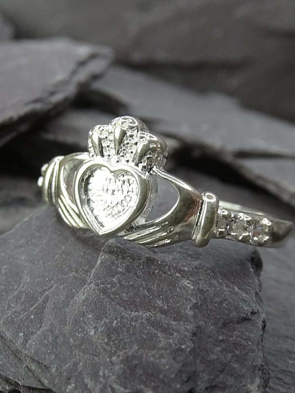 Claddagh Ashes Memorial Ring is a stunning way of honouring special memories. The Claddagh Ring is a traditional Irish ring that represents Love (the heart), Loyalty (the crown) and Friendship (the hands). This version has precious Crystals on the shank of the ring.