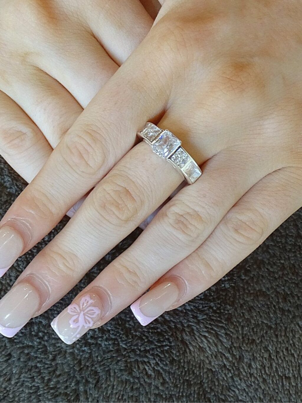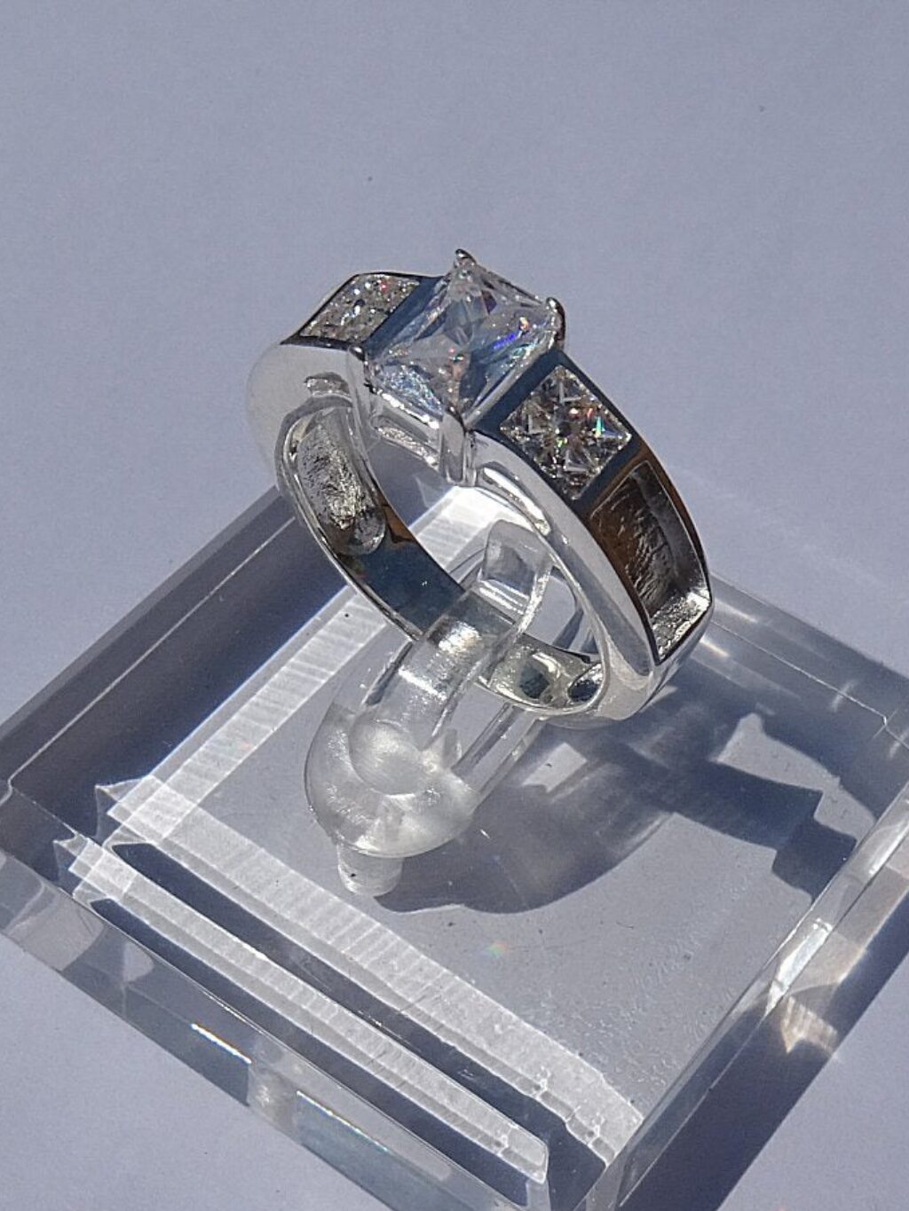 The ‘Zara’ ring is a beautiful way to adorn your sentimental inclusions. The 3 CZ stones are of AAA grade. These adorn centre and side whilst additional channels are set to include your inclusions.