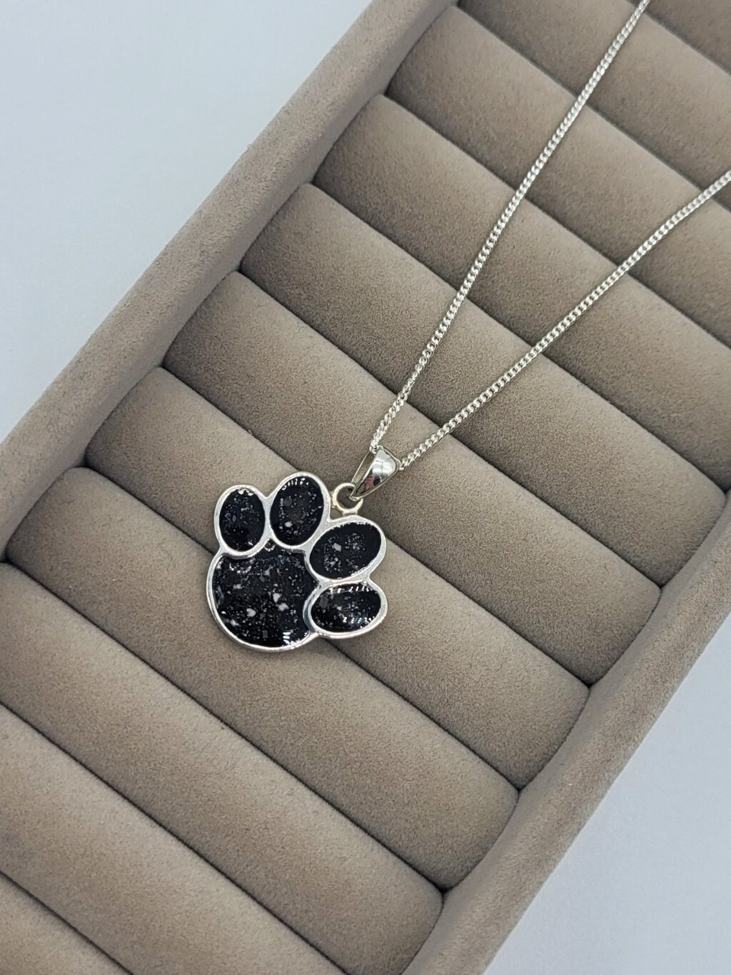 Our 925 Solid Sterling Silver Paw Pendants are designed for commemorating our beloved fluffy companions. Each one designed bespoke to you. We can create you your bespoke pendant with a choice of eighteen different coloured backgrounds.