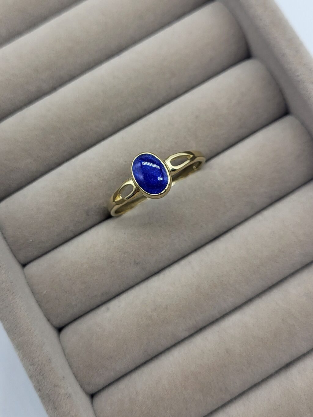As part of our gold collection is the ladies 9ct Gold Oval ring. Classic and sleek in design. Available in eighteen background colours and birthstone colour choices.